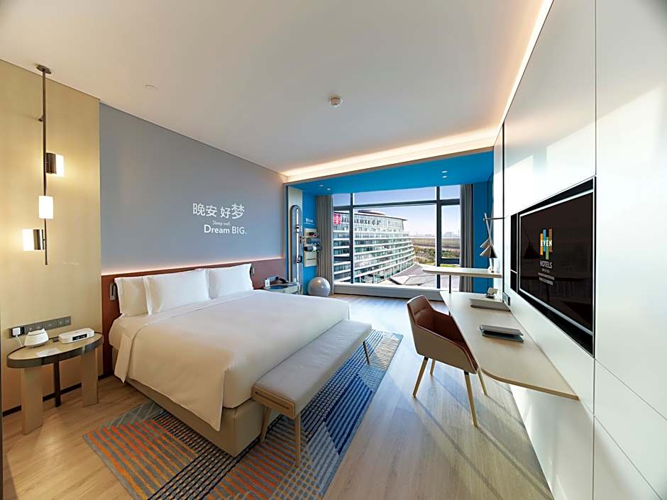 1 Bedroom Suite Football Stadium View is 710 square feet and includes a king-size bed 150-183 width.